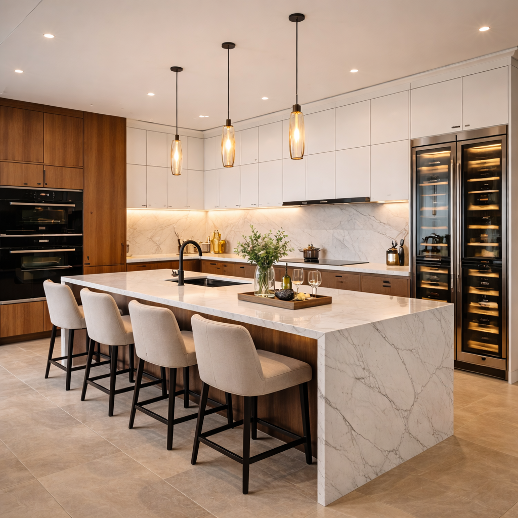 Cozinha Planejada com Ilha: Vale a Pena? A ilha central é o sonho de consumo de dez entre dez pessoas que decidem reformar a cozinha. Mas, além da estética impecável inspirada em programas de culinária, será que essa configuração é viável para todos os tipos de plantas arquitetônicas em 2026? Para decidir se a ilha é a escolha certa para você, é preciso analisar o fluxo de circulação e as necessidades de interação da sua família. Uma ilha bem planejada pode ser o coração da casa, enquanto uma mal projetada pode se tornar um obstáculo no dia a dia. Vantagens e Requisitos Técnicos Interação e Funcionalidade A ilha permite que quem cozinha esteja de frente para a sala, promovendo a socialização. Além disso, ganha-se uma área de preparo muito mais ampla. Espaço de Circulação Mínimo Para que a ilha seja funcional, é necessário manter um corredor de pelo menos 100cm ao redor de toda a estrutura para permitir a abertura de portas e gavetas. Conclusão A cozinha com ilha vale muito a pena se você possui espaço suficiente e deseja integrar os ambientes de forma moderna. Ela transforma o ato de cozinhar em uma atividade compartilhada e valoriza imensamente o imóvel. Sonha com uma ilha na sua cozinha? Deixe nossos projetistas desenharem a solução ideal para você!